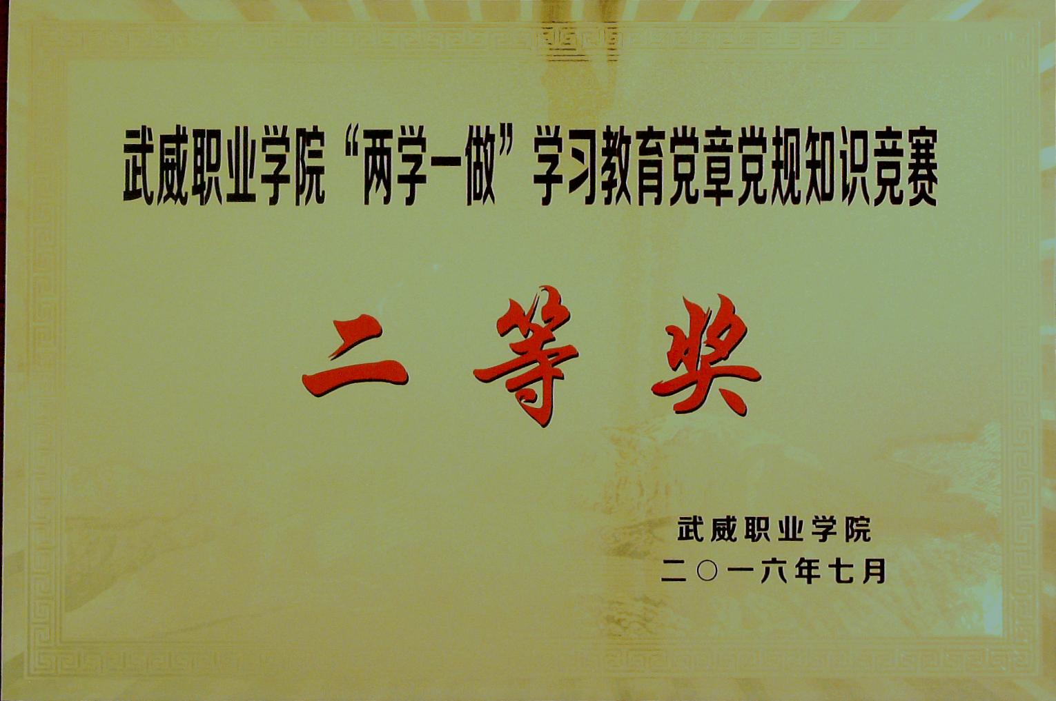 兩學(xué)一做學(xué)習(xí)教育黨章黨規(guī)知識競賽二等獎