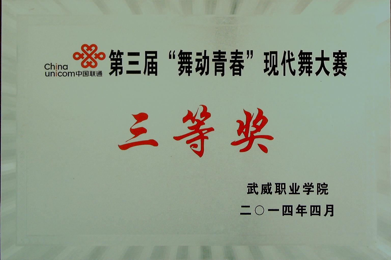 “舞動青春”現(xiàn)代舞大賽三等獎