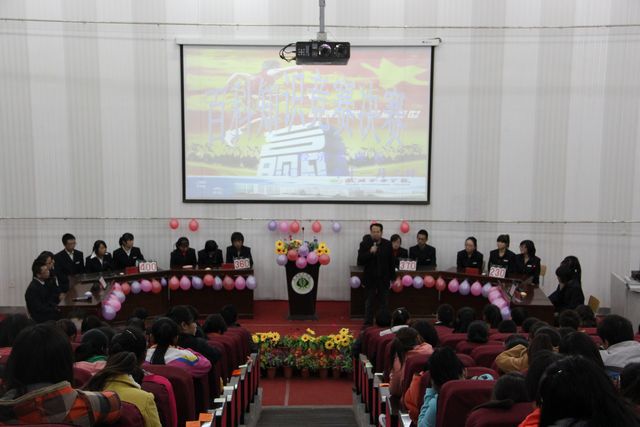 2012年11月7日晚,學(xué)院東階梯教室燈火輝煌,座無虛席。經(jīng)過組委會師生的精心籌備,經(jīng)濟管理系第五屆大專生百科知識競賽決賽在廣大師生的期盼中順利拉開了帷幕。學(xué)院副院長王永緒、教務(wù)處處長魏潤民、學(xué)生處處長潘從民、院團委副書記王政、經(jīng)濟管理系主任邸光才、黨總支書記白玉珍及經(jīng)濟管理系全體老師出席了決賽。