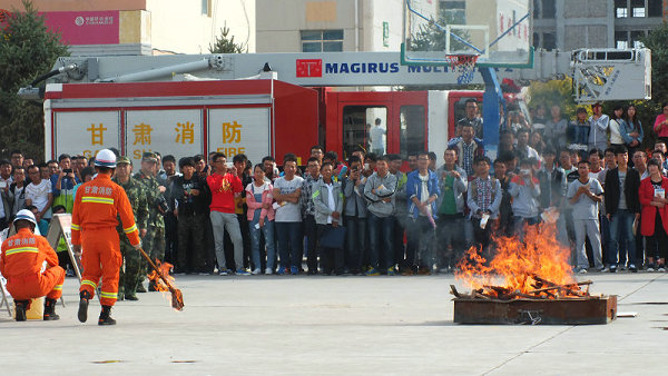 在演練現(xiàn)場(chǎng),武威消防支隊(duì)的工作人員詳細(xì)講解了我院配備的ABC型干粉滅火器的性能、用途、操作方法及撲救初起火災(zāi)的注意事項(xiàng),并進(jìn)行了現(xiàn)場(chǎng)演示。2015級(jí)各新生代表組成滅火隊(duì)依照次序和規(guī)定,進(jìn)行了模擬火災(zāi)的現(xiàn)場(chǎng)撲救演練。演練中,滅火隊(duì)員動(dòng)作正確、快捷、滅火過(guò)程快速安全,觀摩的同學(xué)們也很認(rèn)真。