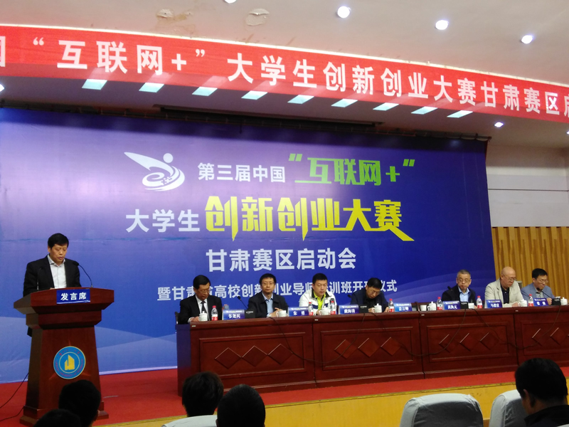5月4日,第三屆中國“互聯(lián)網(wǎng)+”大學(xué)生創(chuàng)新創(chuàng)業(yè)大賽甘肅賽區(qū)啟動(dòng)會暨甘肅省高校創(chuàng)新創(chuàng)業(yè)導(dǎo)師培訓(xùn)在蘭州理工大學(xué)逸夫科技館舉行。大賽由甘肅省教育廳主辦,蘭州理工大學(xué)和新道科技股份有限公司具體承辦。我院黨委副書記趙明,創(chuàng)新創(chuàng)業(yè)中心主任胡建宏及受訓(xùn)導(dǎo)師申賓德和王鐸云受邀參加了啟動(dòng)儀式。啟動(dòng)儀式由蘭州理工大學(xué)副校長韋堯兵主持。