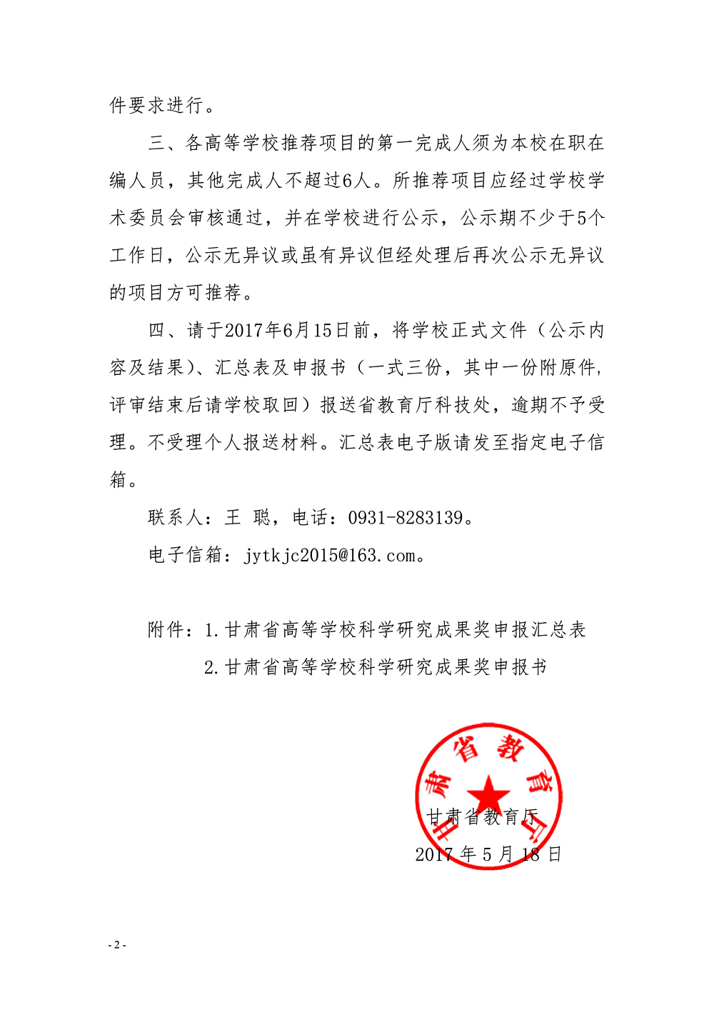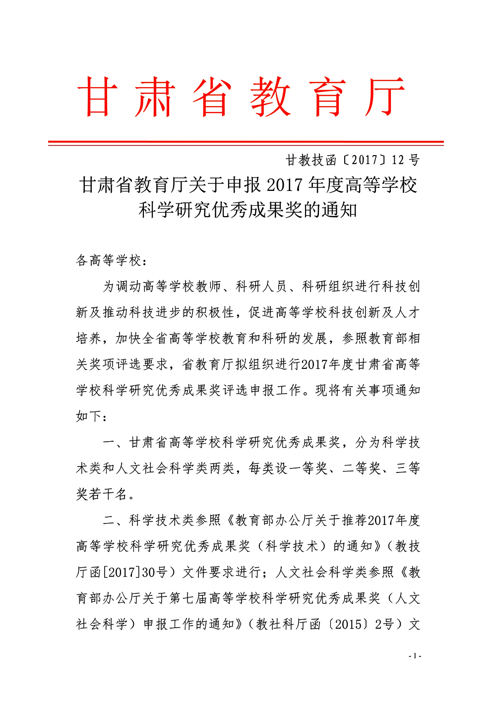 轉(zhuǎn)發(fā)甘肅省教育廳關(guān)于申報2017年度高等學(xué)??茖W(xué)研究優(yōu)秀成果獎的通知