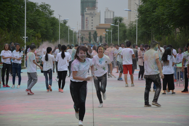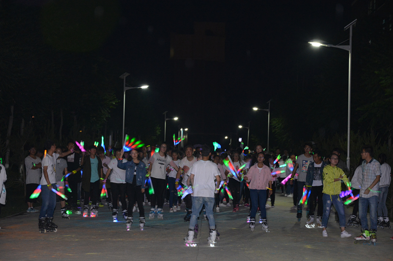 下午三點(diǎn),學(xué)院團(tuán)委宋文龍老師在啟動(dòng)儀式上做了熱情洋溢的致辭,團(tuán)學(xué)干部帶領(lǐng)參賽選手開啟了本次活動(dòng)的奔跑。本次活動(dòng)由“趣味沖關(guān)”“彩虹跑”“熒光夜跑”三個(gè)環(huán)節(jié)組成。“趣味沖關(guān)”由一系列小游戲組成,需要大家齊心協(xié)力、互相配合完成,同學(xué)們滿懷激情,在奔跑的同時(shí)體驗(yàn)著合作的趣味與快樂。掌聲、笑聲、加油聲此起彼伏,選手與觀眾互動(dòng)交流,整個(gè)過程充滿了愉悅的氣氛。下午五點(diǎn)開啟了整個(gè)活動(dòng)中最精彩的“彩虹跑”,同學(xué)們手捧玉米粉在慢跑中相互揮灑,多彩的玉米粉在他們身上留下了青春的印記。隨著夜幕降臨,精彩的“熒光夜跑”活動(dòng)隨之開始,同學(xué)們手帶熒光環(huán),舞動(dòng)熒光棒,在輪滑社成員的帶領(lǐng)下繞著校園跑動(dòng)。熒光點(diǎn)綴著夜色,歡快的音樂、青春的聲音充斥著整個(gè)校園?;顒?dòng)結(jié)束后,在學(xué)院東門小廣場舉行了自由晚會(huì),同學(xué)們圍成一圈,在主持人的帶動(dòng)下做互動(dòng)小游戲、自由演唱,一陣陣歡聲笑語回蕩在整個(gè)校園。