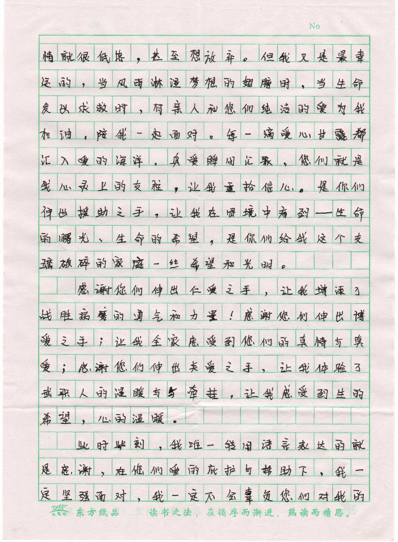 高國(guó)棟同學(xué)致全院師生的感謝信