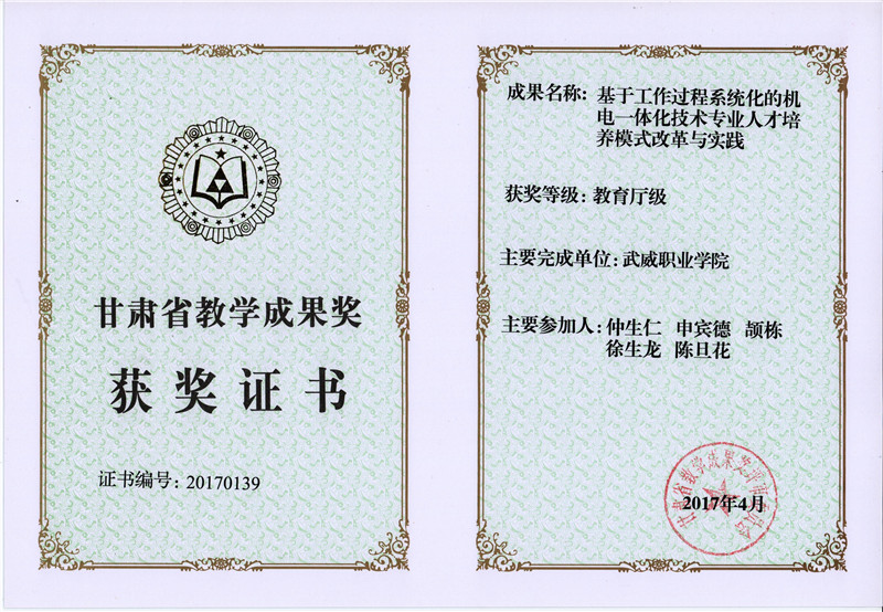甘肅省教學(xué)成果獎-基于工作過程系統(tǒng)化的機(jī)電一體化技術(shù)專業(yè)人才培養(yǎng)模式改革與實踐