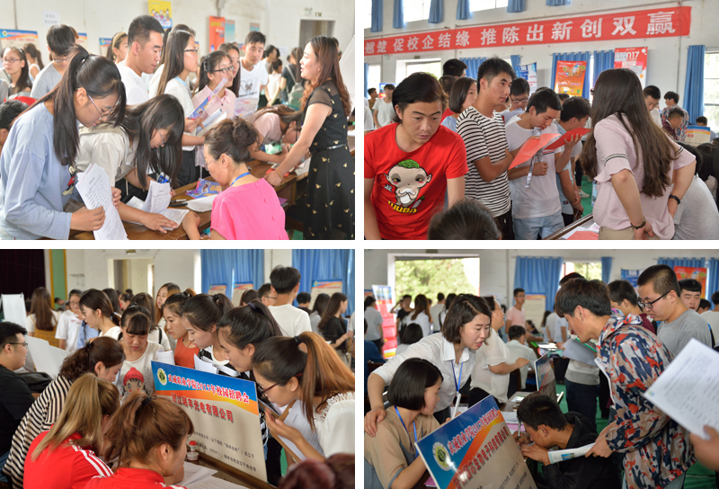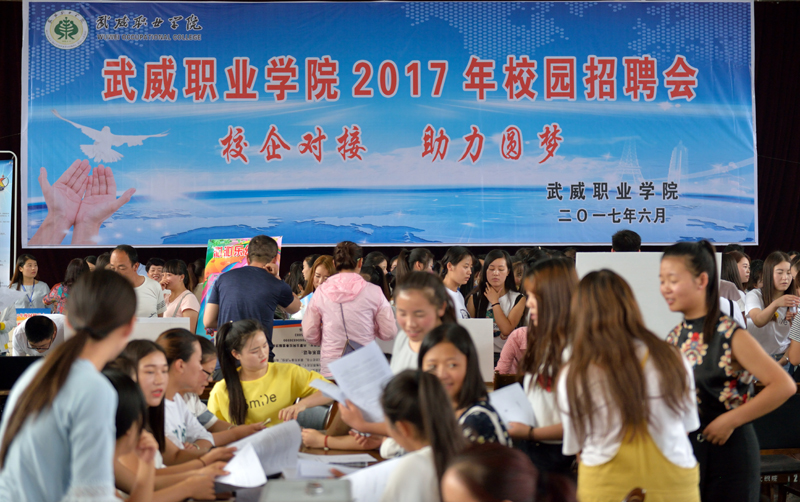 為切實(shí)做好學(xué)院畢業(yè)生就業(yè)工作,大力構(gòu)建畢業(yè)生與用人單位的交流平臺(tái),積極為用人單位輸送應(yīng)用型人才,6月27日上午,在學(xué)院大禮堂舉行了我院2017年校園招聘會(huì)。此次招聘會(huì)參會(huì)企業(yè)共80多家,其中武威當(dāng)?shù)仄髽I(yè)12家,省內(nèi)企業(yè)33家,外地企業(yè)40多家。招聘會(huì)提供就業(yè)崗位1500多個(gè),招聘崗位涉及了機(jī)械制造、信息工程、能源化工、醫(yī)藥衛(wèi)生、經(jīng)濟(jì)管理、學(xué)前教育、市場(chǎng)營(yíng)銷、現(xiàn)代農(nóng)業(yè)等行業(yè),參加應(yīng)聘學(xué)生近3000人次,現(xiàn)場(chǎng)意向性簽約800多人。