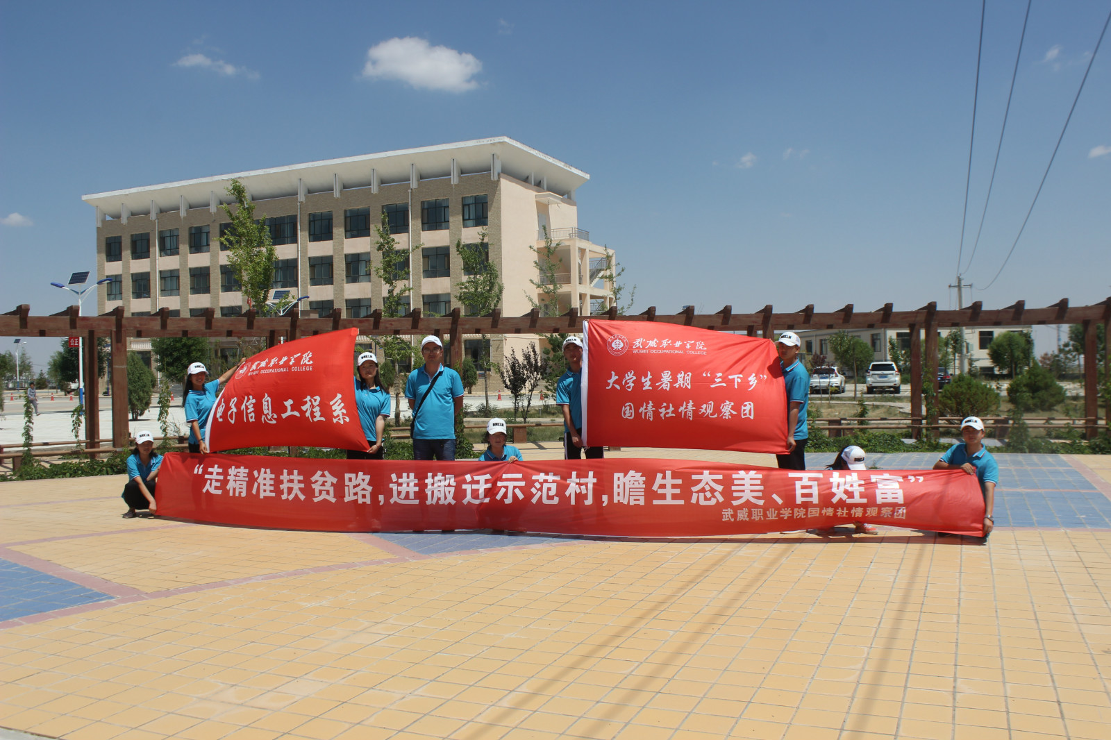 2017年暑假期間,電子信息工程系組織武威職業(yè)學(xué)院國情社情觀察團(tuán)開展了以“喜迎十九大,青春建新功”為主題的大學(xué)生暑期“三下鄉(xiāng)”社會(huì)實(shí)踐活動(dòng)。
