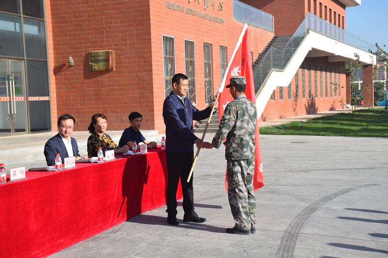 動(dòng)員大會(huì)在莊嚴(yán)的國歌聲中開始,學(xué)院學(xué)工辦負(fù)責(zé)人劉菊萍就訓(xùn)練時(shí)間、訓(xùn)練紀(jì)律要求等方面做了具體的安排。軍訓(xùn)教官代表王雯和新生代表張林旺分別發(fā)言表態(tài)。湯旻安代表學(xué)院在會(huì)上作了軍訓(xùn)動(dòng)員講話。他強(qiáng)調(diào),同學(xué)們要在軍訓(xùn)過程中要提高認(rèn)識(shí)、端正態(tài)度,真正把軍訓(xùn)作為大學(xué)生的一門必修課;刻苦訓(xùn)練、認(rèn)真學(xué)習(xí),在訓(xùn)練中樹立不怕苦、不怕累的精神,確保訓(xùn)練效果;嚴(yán)格要求、強(qiáng)化管理,確保軍訓(xùn)工作緊張、有序、安全;講文明樹新風(fēng)、除陋習(xí)展形象,樹立良好風(fēng)尚,展示新時(shí)代大學(xué)生的風(fēng)采;以人為本、科學(xué)施訓(xùn),確保軍訓(xùn)工作取得實(shí)效。最后,由湯旻安向軍訓(xùn)教官授旗,標(biāo)志著2017級(jí)新生軍訓(xùn)正式拉開帷幕。