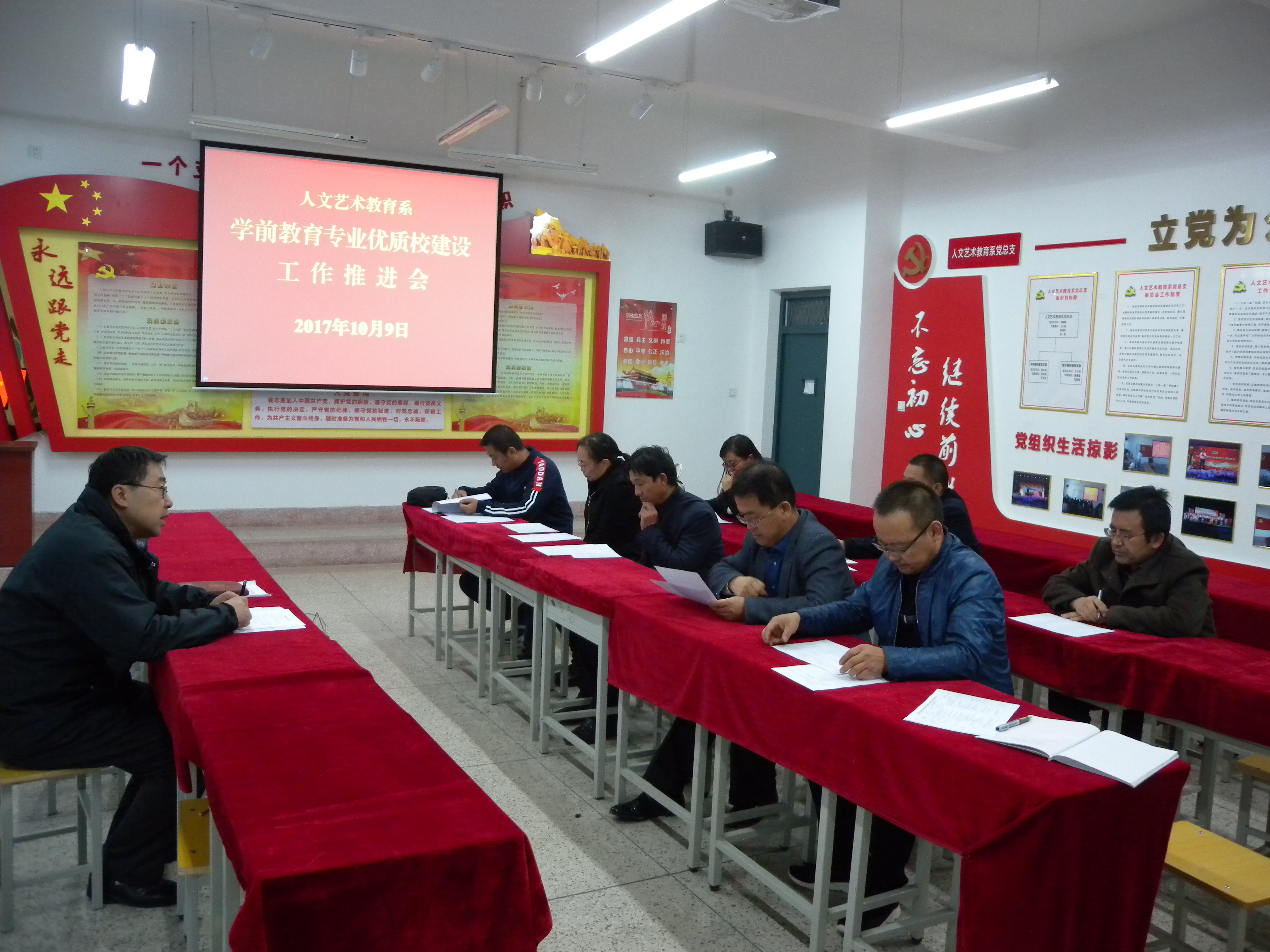 為了進(jìn)一步推進(jìn)學(xué)院優(yōu)質(zhì)高職院校建設(shè),人文藝術(shù)教育系于10月9日下午在勵(lì)勤樓209會(huì)議室召開了學(xué)前教育專業(yè)優(yōu)質(zhì)校建設(shè)推進(jìn)會(huì)。會(huì)議由系黨總支書記胡靜峰主持,人文藝術(shù)教育系學(xué)前教育專業(yè)建設(shè)項(xiàng)目組全體成員參加。