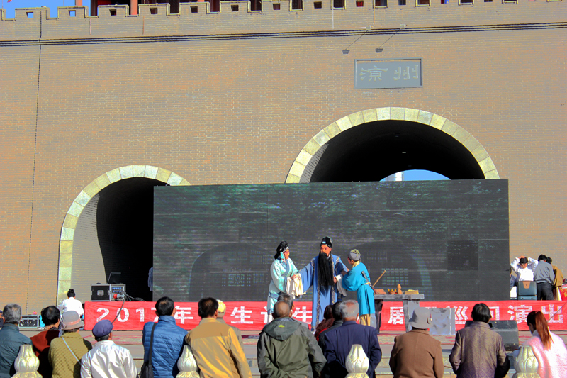上午10.00時(shí)許,秦腔《皇甫謐》在露天舞臺(tái)正式演出?,演員們精彩的表演吸引了數(shù)百名群眾駐足觀看,場(chǎng)面十分熱烈。